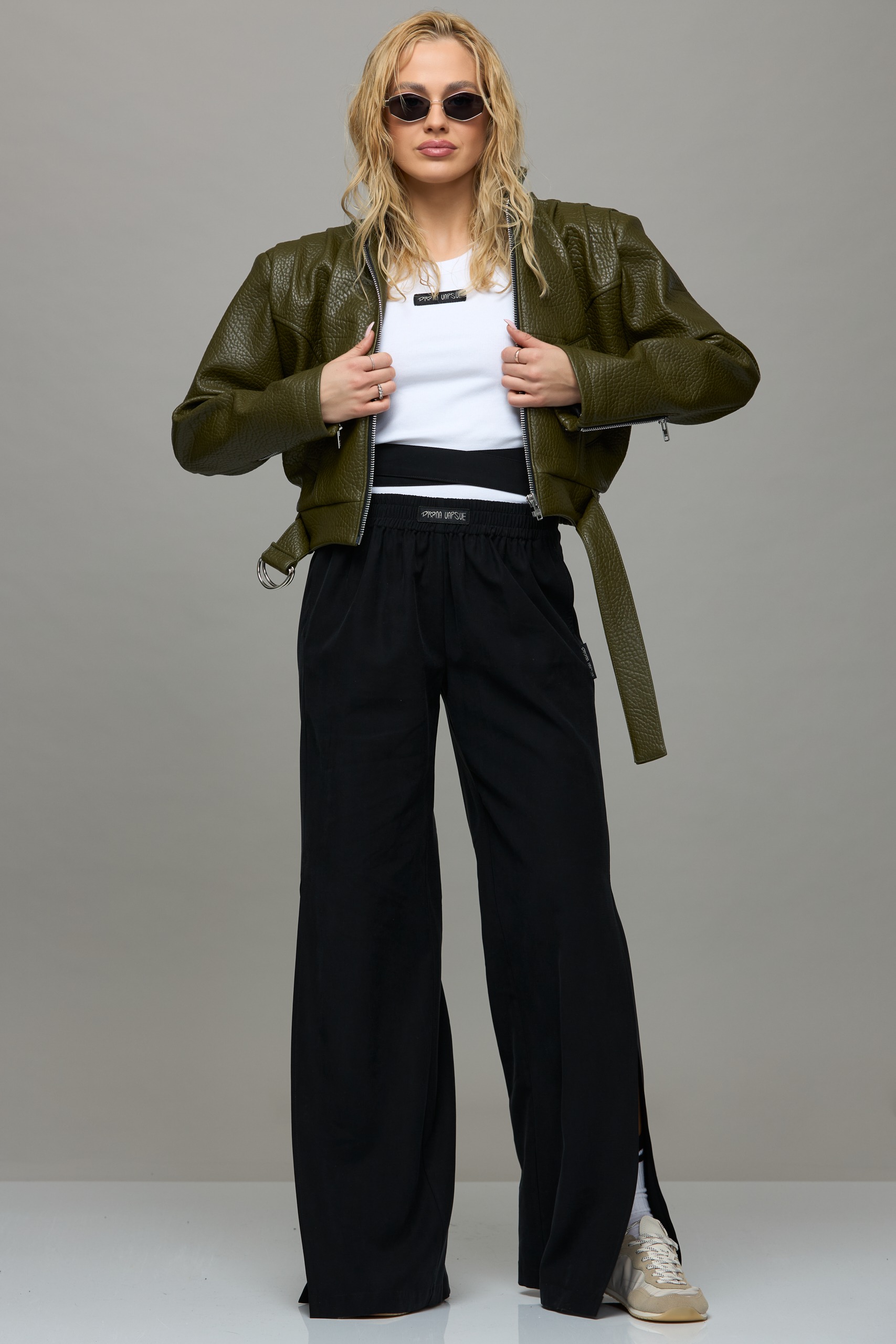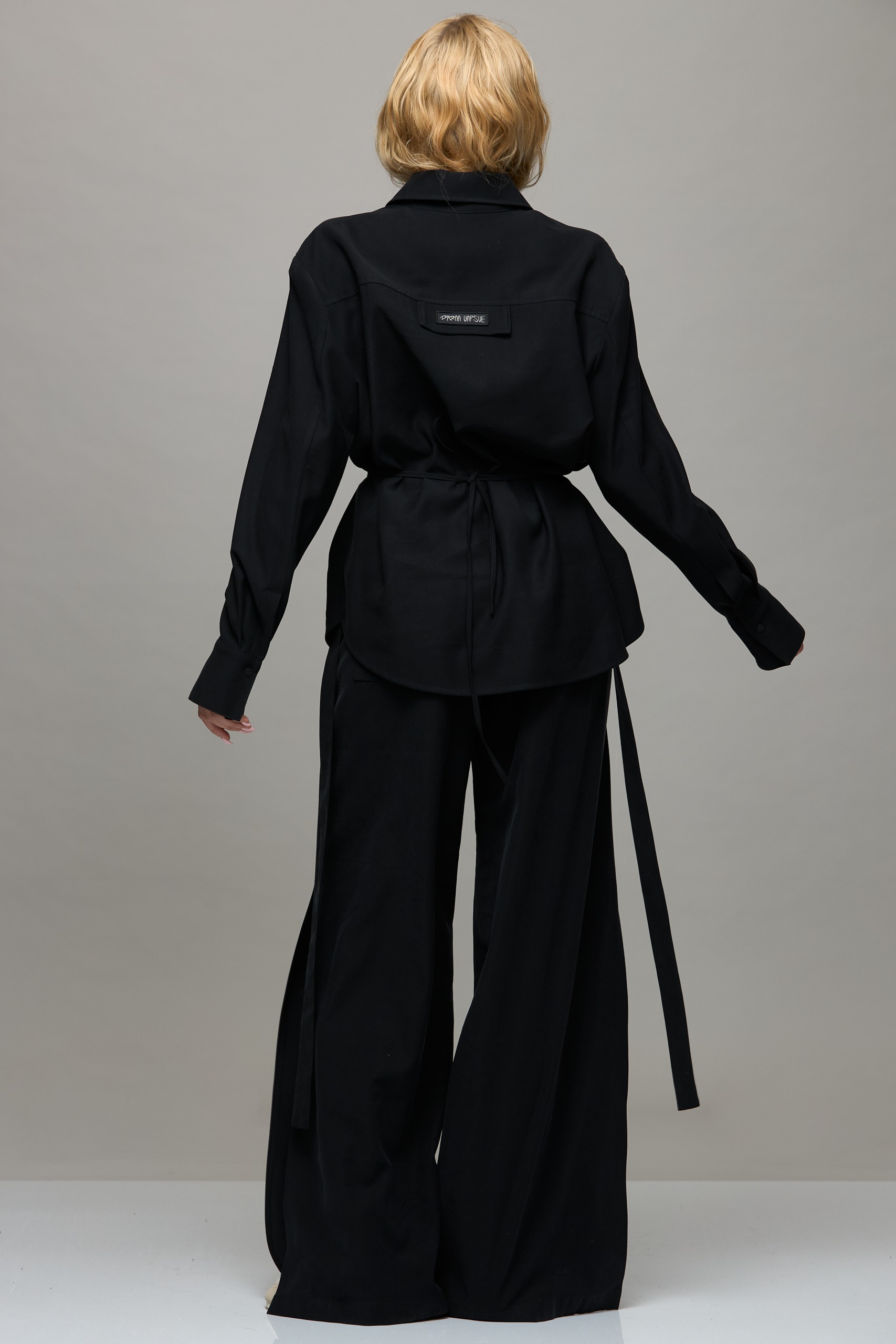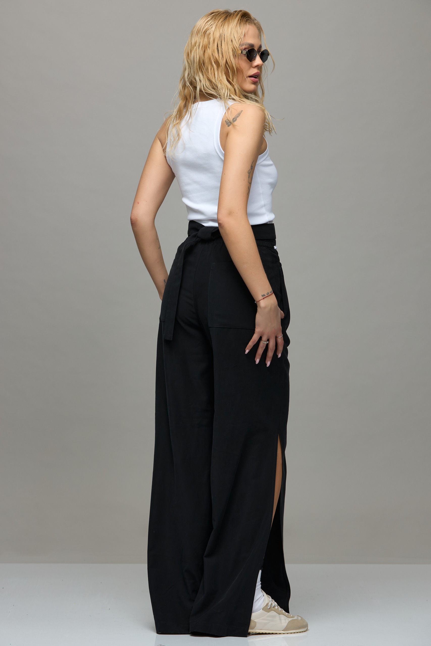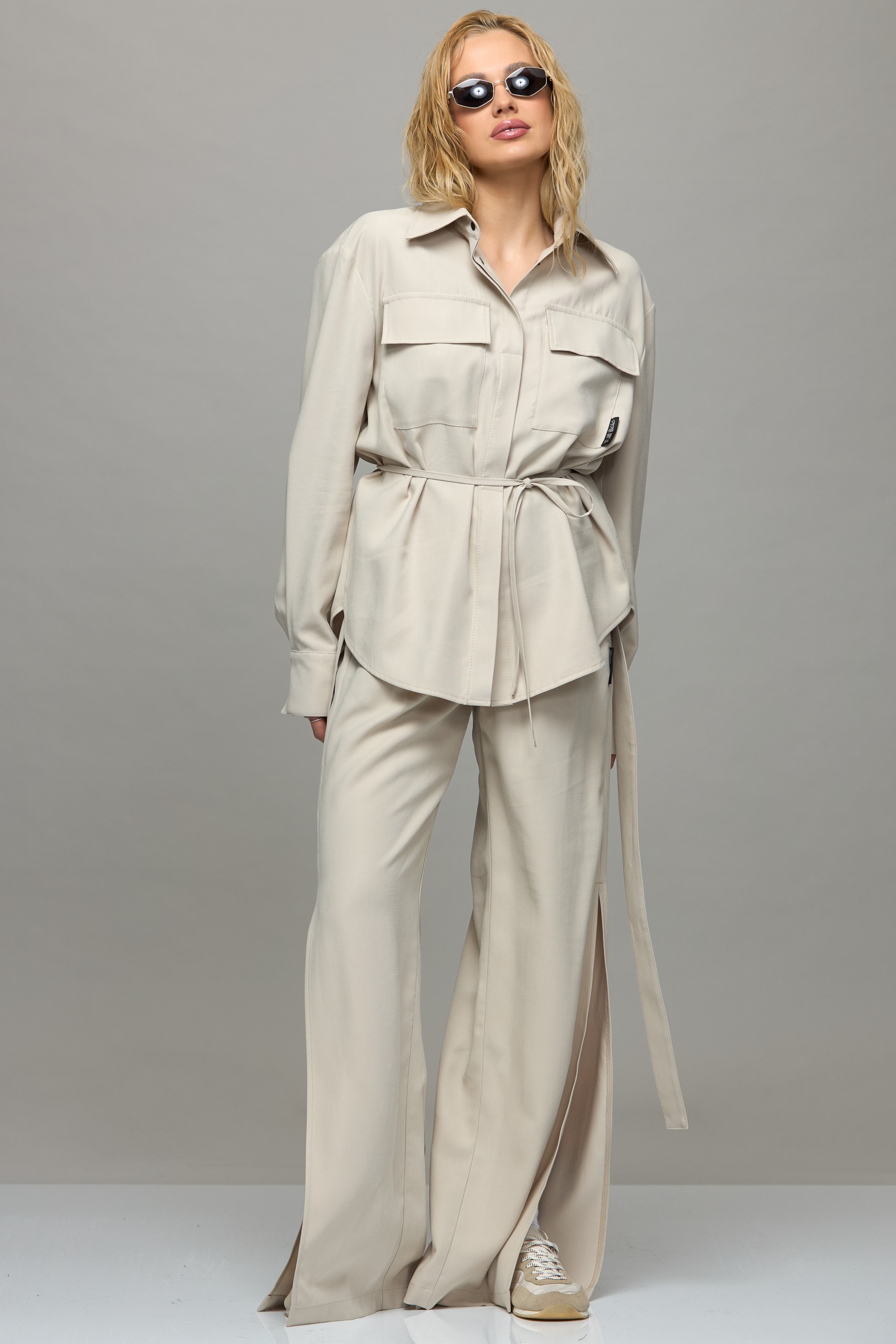 - Kelnių juosmuo turi papildomą diržą, kurį galima apsisukti aplink juosmenį, tai suteikia kelnėms dvigubo juosmens siluetą