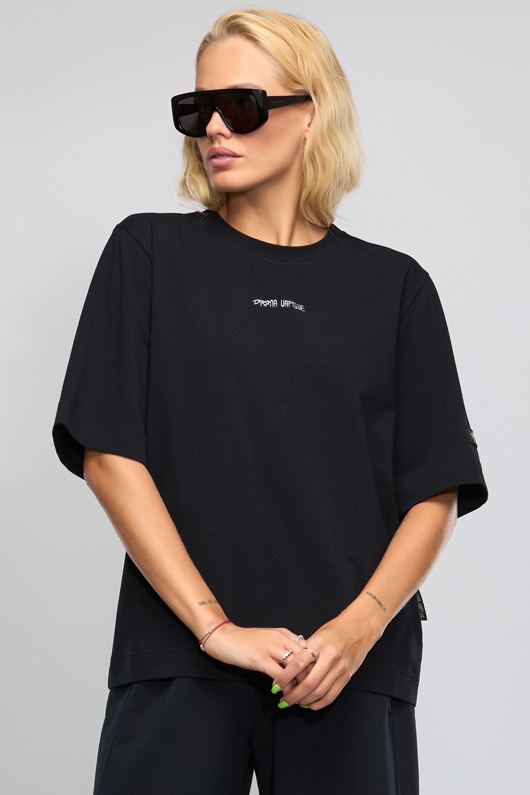 - Marškinėliais us Diana Vapsve užrašu priekyje