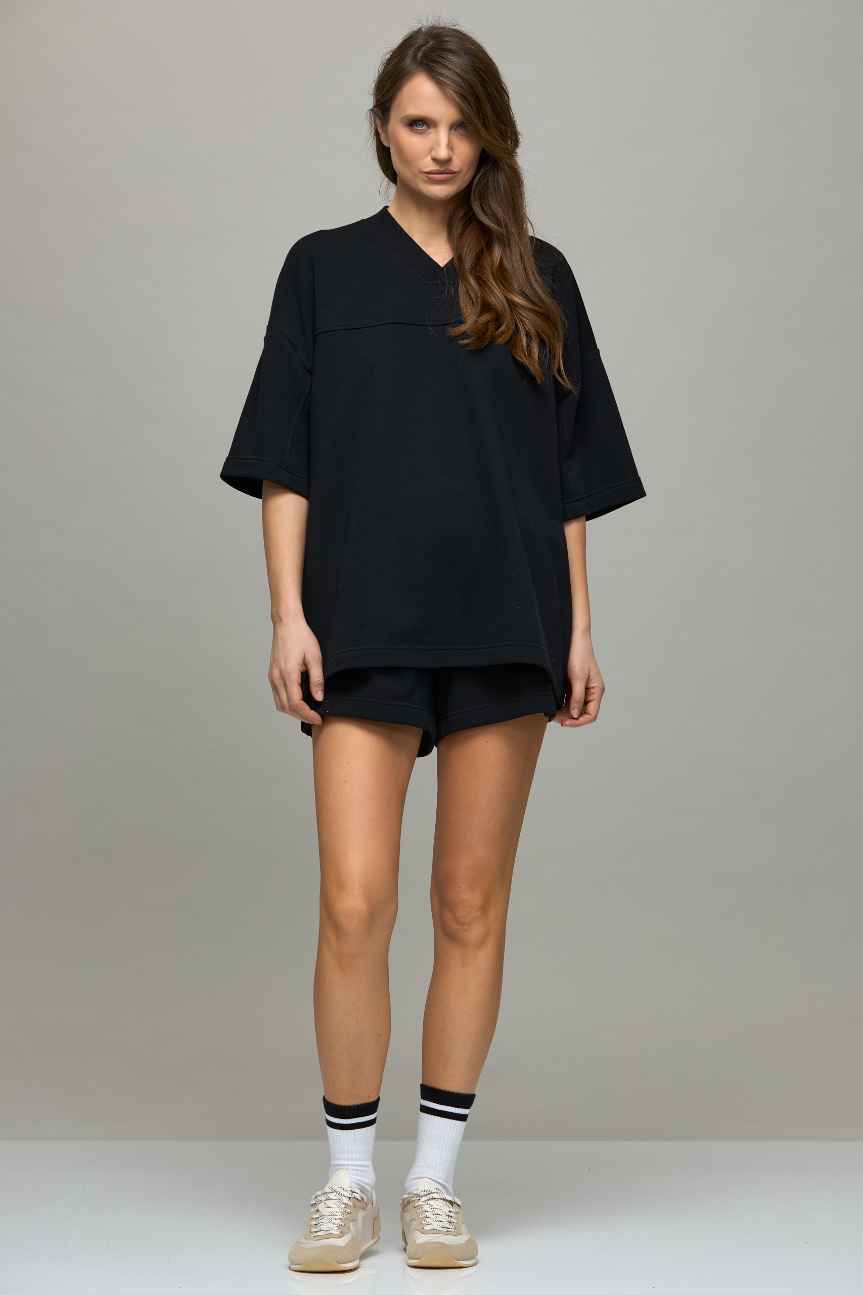 - Kilpinio trikotažo oversize palaidinė