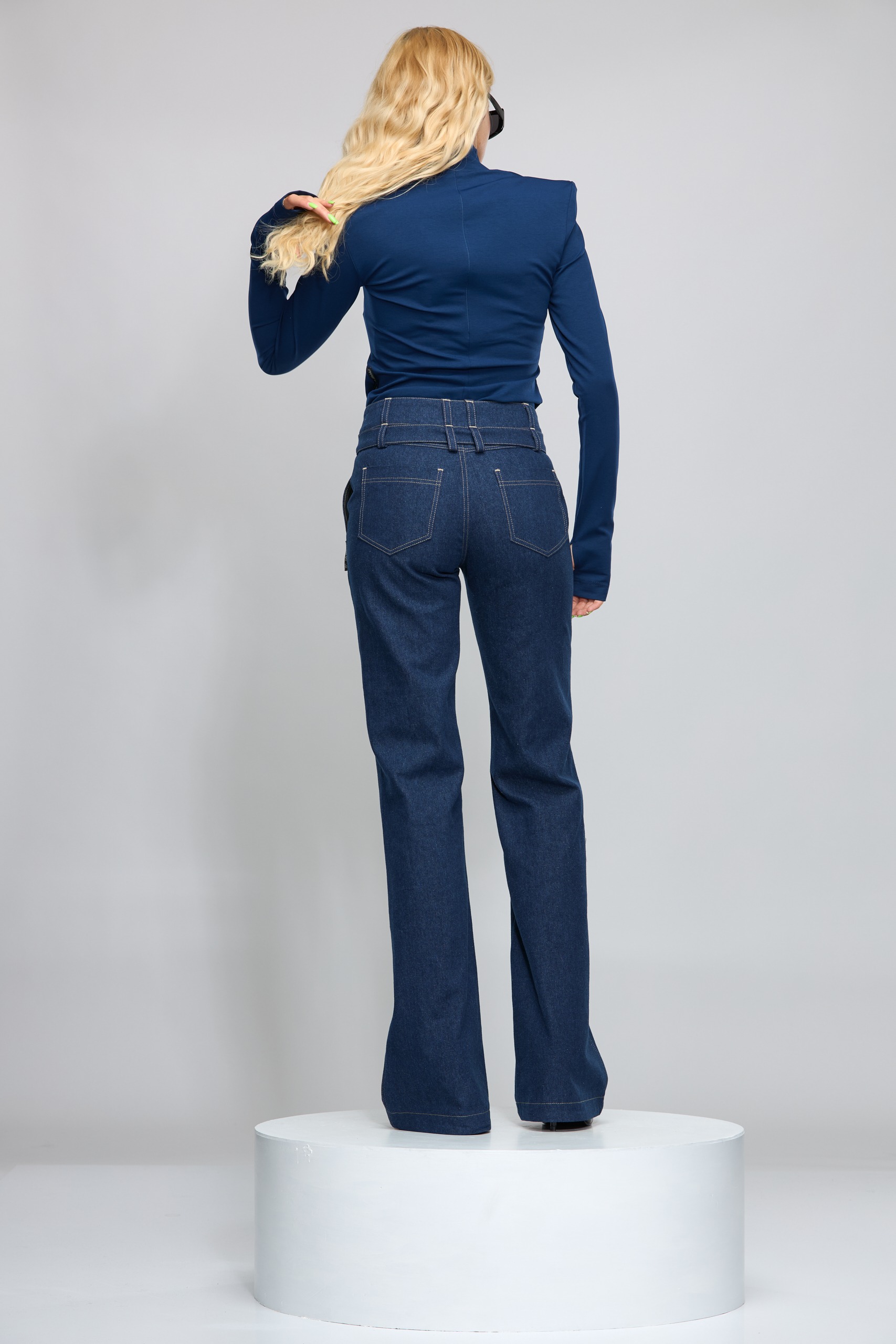 Mėlyno ir kreminio audinio sudėtis: 52% Medvilnė, 40% Nailonas, 8% Elastanas