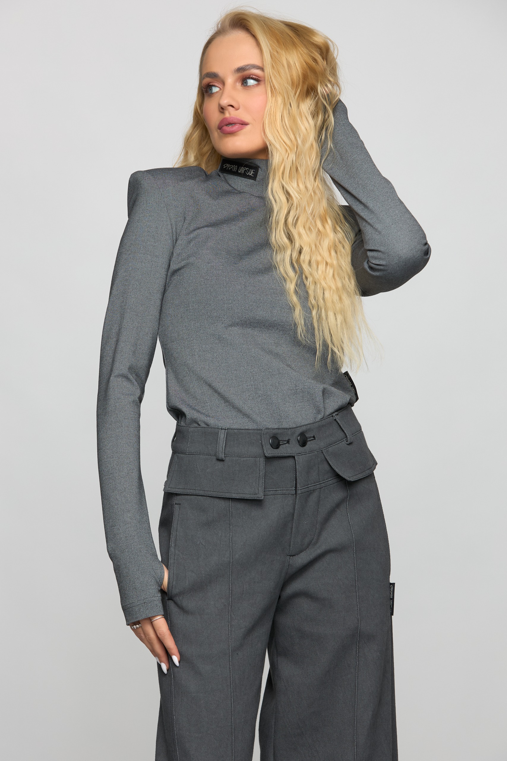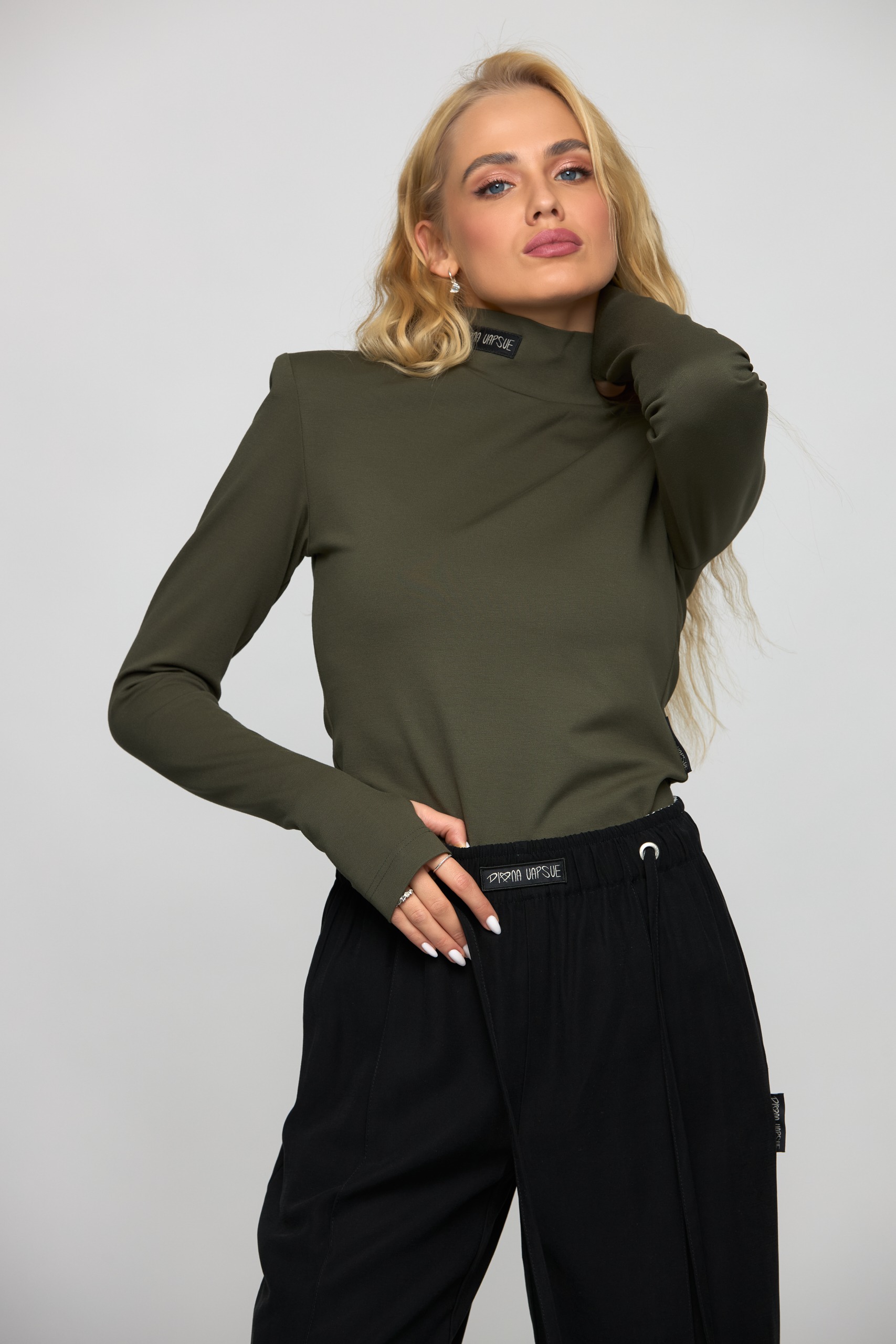 - Tvirto trikotažo palaidinė ilgomis rankovėmis